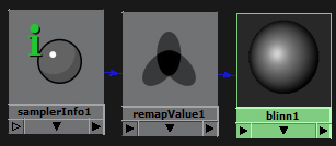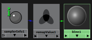 HyperShade上で、『remapValue』と『samplerInfo』をつくります。